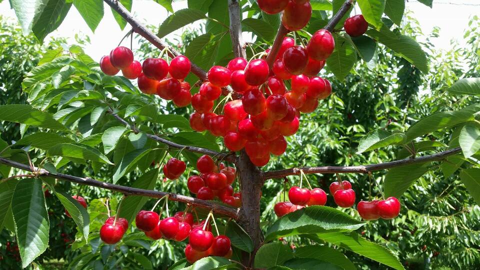 We have seven different cherry varieties ripening over a period of about 5 weeks of summer. The season begins with the Sonnet, Samba and Celeste varieties which typically ripen just before Christmas. After Christmas our Stella variety ripens to it's best and then around the New Year our Lapins ripen. Also around the New Year our very special white fleshed cherry the Rainier ripens to its very sweetest. Very few growers produce this delicate and special variety.